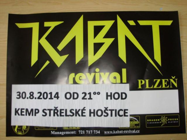 Obec Střelské Hoštice Vás srdečně zve 30.8.2014 od 21°° hodin do kempu ve Střelských Hošticích na koncert skupiny Kabát revival Plzeň.