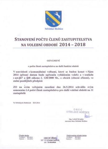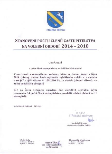 Stanovení počtu členů zastupitelstva na volební období 2014 - 2018