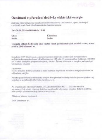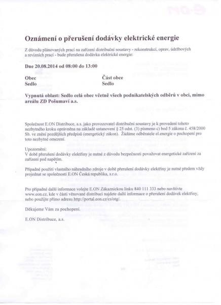 Vypnutá část : Sedlo celá obec včetně všech podnikatelských odběrů v obci, mimo areálu ZD Pošumaví a.s.