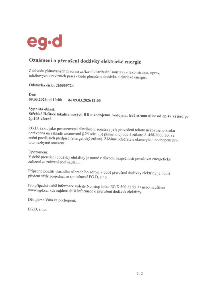 Přerušení dodávky elektrické energie