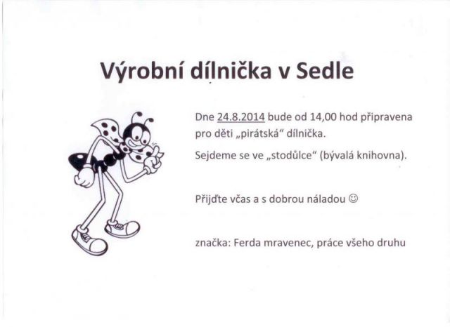 Dne 24.8.2014 od 14°° hodin bude pro děti připravena "pirátská" dílnička.